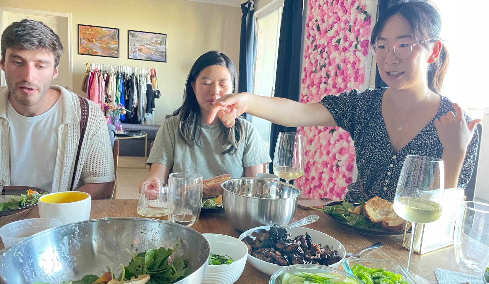 it’s not like food isn’t still a part of my life; one of my favorite things in the world is sharing food! i will always buy baby carrots for snacking over bigger carrots because they’re easier to share, just in case i have guests. i adore baking banana bread because i can cut a loaf up into slices and make a day out of delivering parcels to friends of mine around the city. every time i hear my sister has not tried a dish, i will jump to have that experience with her. i love cooking for people, keeping notes on my phone of their dietary restrictions and their likes and dislikes. and i love eating other people’s cooking, appreciating their effort and time and love and getting a window into their current obsessions or how their tastes were shaped by their life. my favorite food by the way is my mother’s spicy shrimp curry. because my mother enjoys making it for me.
